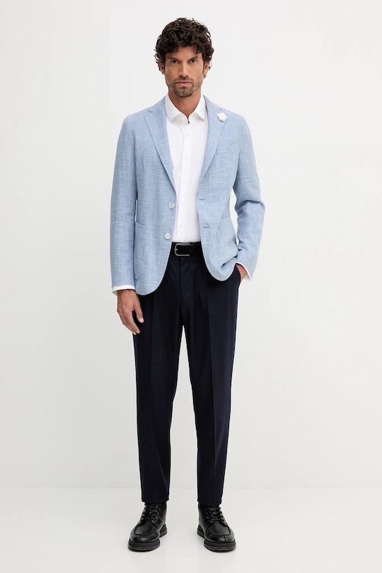 Пиджак из коллекции BOSS выполнена из тонкой, неэластичной ткани. Шерсть обладает естественными дышащими и терморегулирующими свойствами. - Приталенный фасон. - Однобортный пиджак с застежкой на пуговицы. - Накладной карман на груди. - Два накладных кармана спереди. - Разрезы сзади обеспечивают свободу движений и лучшую посадку материала. - Модель с декоративной булавкой. - Модель без подкладки. - Длина рукава: 61 см. - Длина: 72 см. - Ширина под мышками: 51 см. - Ширина плеч: 41 см. - Размеры указаны для размера: 48.