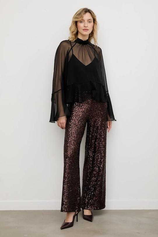 Брюки из коллекции Answear.LAB, выполненные из материала с пайетками. Эффектный, мерцающий материал. - Высокая талия с эластичным поясом. - Прямая нога полной длины. - Дополнительный слой материала в виде подкладки. - Ширина талии: 33 см. - Ширина бедер: 40 см. - Высота талии: 27 см. - Ширина штанины внизу: 28 см. - Ширина штанины: 27 см. - Размеры указаны для размера: S.