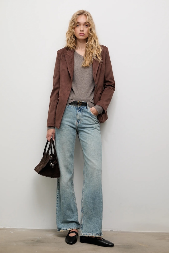 Эта куртка Answear.Lab изготовлена из искусственной замши. Полиэстер обеспечивает повышенную устойчивость к сминанию. - Простой дизайн, не стесняющий движений. - Удобная застежка на кнопки позволяет легко надевать и снимать. - В плечах вшиты подкладки. - Два накладных кармана спереди. - Модель на подкладке. - Длина рукава: 58 см. - Длина: 64 см. - Ширина под мышками: 45 см. - Ширина плеч: 35 см. - Размеры указаны для размера: S.