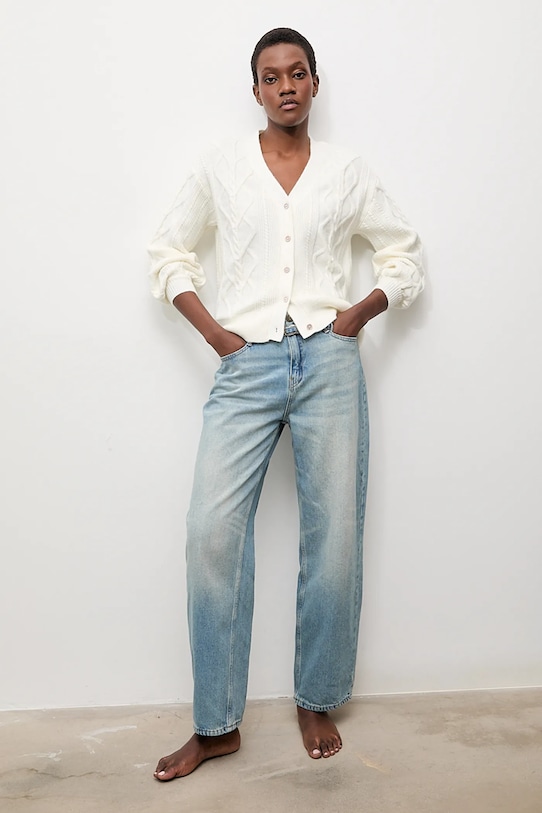 Этот кардиган из коллекции Answear.LAB выполнен из гладкого трикотажа средней плотности. Оптимальная эластичность обеспечивает полную свободу движений. - Свободный крой, обеспечивающий полную свободу движений. - Длинный рукав. - Крой рукава со спущенной линией плеча не ограничивает подвижность. - Рукава и низ изделия отделаны манжетами для защиты от неблагоприятных погодных условий. - Удобная застежка на кнопки позволяет легко надевать и снимать. - Длина рукава (от горловины): 71 см. - Длина: 62 см. - Ширина под мышками: 54 см. - Указаны размеры: S/M.