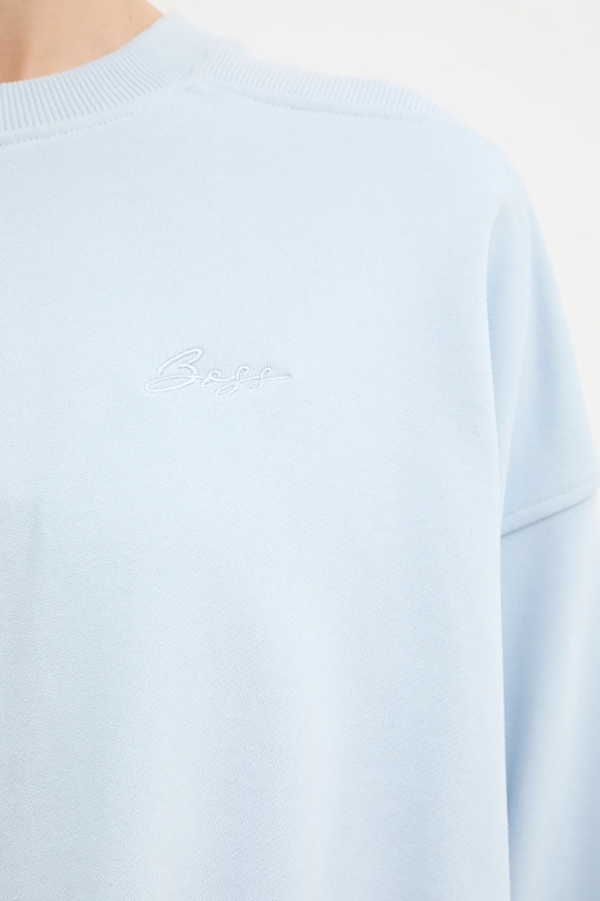 Эта толстовка из коллекции BOSS Orange выполнена из эластичного хлопкового трикотажа. Модель выполнена из высококачественного и прочного материала. - Свободный крой, обеспечивающий полную свободу движений. - Модель на подкладке. - Круглый ребристый вырез. - Рукава отделаны узкой эластичной манжетой. - Декоративные закладки. - Крой рукава со спущенной линией плеча не ограничивает подвижность. - Длина рукава (от горловины): 88 см. - Длина: 56 см. - Ширина под мышками: 74 см. - Размеры указаны для размера: S.