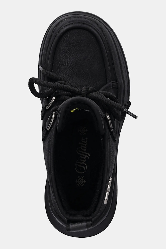 Эти зимние ботинки из коллекции Buffalo изготовлены из искусственной кожи. Модель имеет мягкую подкладку внутри для дополнительной мягкости и комфорта. - Модель отмечена знаком PETA-Approved Vegan, который гарантирует, что продукт полностью веганский. - Мягкая внутренняя отделка обеспечивает высокий комфорт использования и оптимальный тепловой комфорт. - Круглый, жёсткий носок. - Усиленный задник стабилизирует пятку и удерживает ногу в обуви, не давая ей выскользнуть во время движения. - Модель на шнуровке. - Изолированная модель. - Резиновая подошва прочная и устойчивая к повреждениям. - Платформенная модель. - Высота платформы: 5,5 см. - Длина вставки: 23 см. - Размеры указаны для размера: 37.