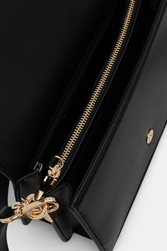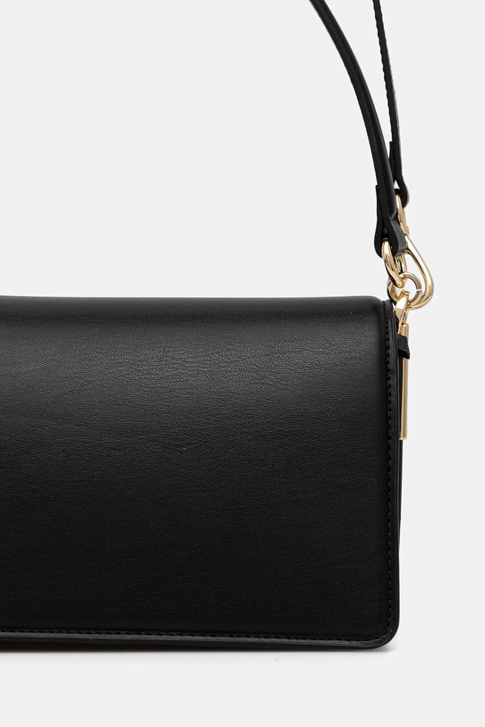 Небольшая сумочка из коллекции Tommy Hilfiger. Застёгивается на молнию, выполнена из экокожи. - Клапан застегивается на магнит. - Имеет три отделения: два открытых и одно на молнии. - Модель на подкладке. - Не подходит для формата А4. - Внутренний карман на молнии. - Сумка для ношения в руке или на плече. - Имеет ручку и съемный регулируемый ремень. - Входящий в комплект тканевый чехол защищает изделие от пыли. - Минимальная длина ремешка: 112 см. - Максимальная длина ремня: 128 см. - Длина ручки: 47 см. - Глубина: 9,5 см. - Высота: 13,5 см. - Ширина у основания: 25,5 см.