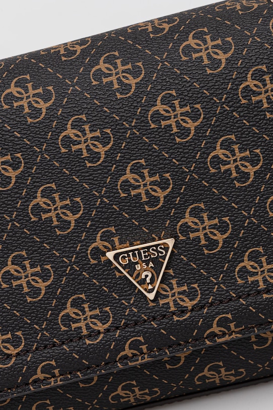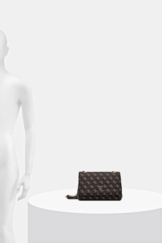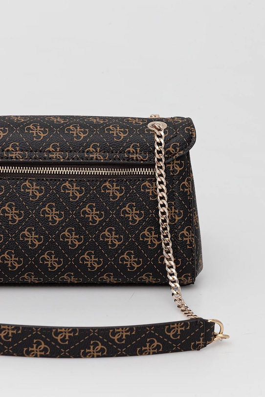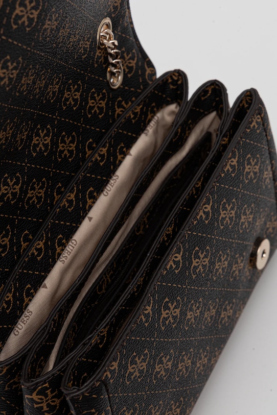 Небольшая сумочка из коллекции Guess. Модель на молнии, выполнена из экокожи. - Клапан застегивается на кнопку. - Имеет три отделения. - Имеет внутренний карман на молнии и отделения для карт. - Карман на молнии на задней стороне позволяет безопасно хранить телефон или другие мелкие предметы. - Входящий в комплект тканевый чехол защищает изделие от пыли. - Не подходит для формата А4. - Несъемный, регулируемый ремешок. - Минимальная длина ремешка: 74 см. - Максимальная длина ремня: 118 см. - Глубина: 9 см. - Высота: 14 см. - Ширина у основания: 24 см.