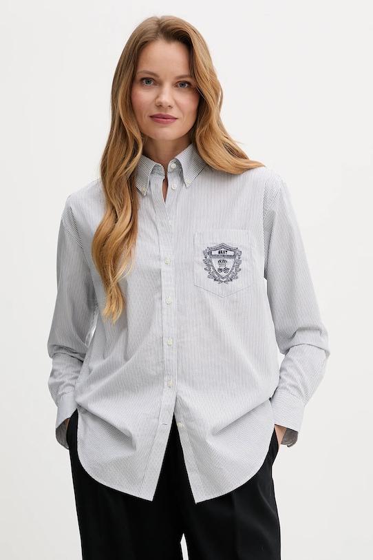 Эта рубашка Gant выполнена из ткани с узором. Эта модель выполнена из исключительно комфортного, дышащего хлопка. - Рубашка свободного кроя отличается свободным кроем, обеспечивает комфорт и не стесняет движений. - Мягкий воротник на пуговицах. - Крой рукава со спущенной линией плеча не ограничивает подвижность. - Мягкие манжеты с двумя пуговицами позволяют индивидуально подогнать посадку. - Накладной карман на груди. - Удлиненный задний край обеспечивает защиту во время движения. - Застежка на пуговицы позволяет легко надевать и снимать. - Логотип бренда вышит спереди. - Длина рукава (от воротника): 75 см. - Длина спереди: 71 см. - Длина спинки: 76 см. - Ширина под мышками: 56 см. - Размеры указаны для размера: 36.