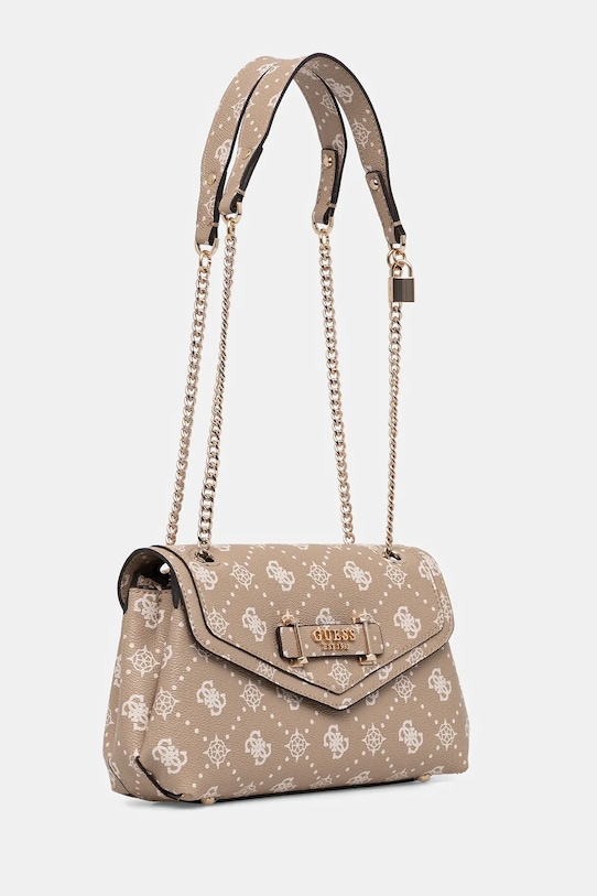 Небольшая сумочка из коллекции Guess. Модель на молнии, выполнена из экокожи. - Содержит переработанный пластик. - Магнитная застежка. - Имеет три отделения, одно из которых застегивается на молнию. - Внутренний карман на молнии. - Имеет внутренние отделения для карт. - Карман на молнии на задней стороне позволяет безопасно хранить телефон или другие мелкие предметы. - Модель на подкладке. - Не подходит для формата А4. - Модель оснащена металлическими ножками, которые защищают дно сумки. - Несъемный, регулируемый ремешок. - Количество слотов для карт: 3. - Входящий в комплект тканевый чехол защищает изделие от пыли. - Глубина: 7,5 см. - Высота: 16,5 см. - Ширина у основания: 25 см. - Минимальная длина ремешка: 71 см. - Максимальная длина ремня: 110 см.