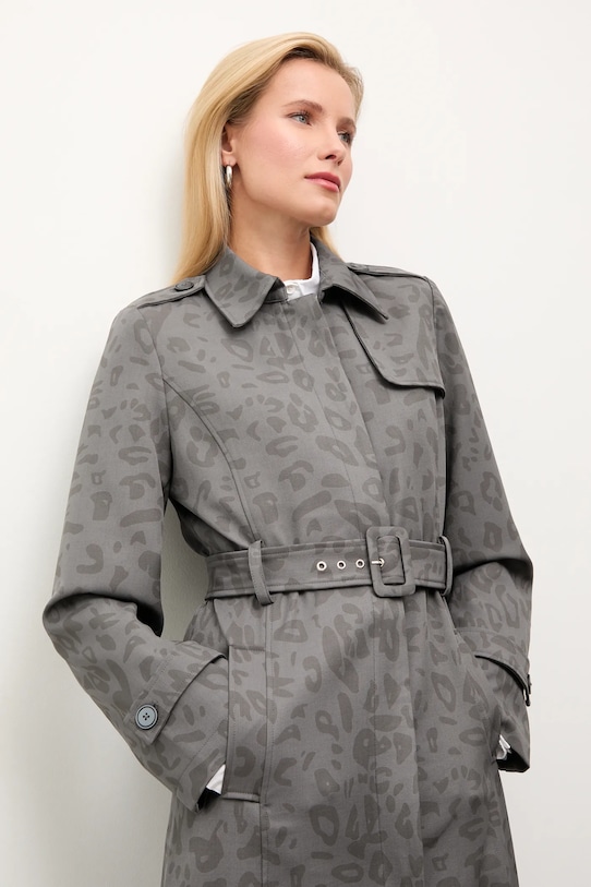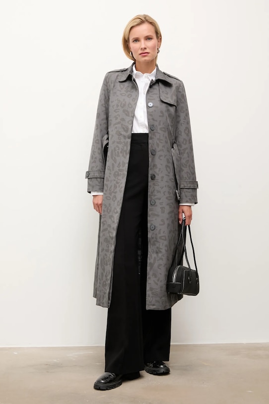Пальто из коллекции Answear.LAB. Эта модель без подкладки выполнена из ткани с узором. - Простой дизайн, не стесняющий движений. - Неутепленная модель с подкладкой. - Модель с воротником. - Погоны на плечах. - Пояс на талии корректирует фигуру и еще больше подчеркивает талию. - Застежка на пуговицы. - Накладные карманы. - Тонкий материал. - Длина рукава: 62 см. - Длина: 118 см. - Ширина под мышками: 45 см. - Ширина плеч: 38 см. - Размеры указаны для размера: S.