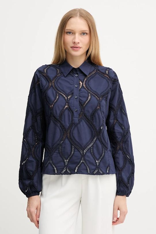 Эта блузка из коллекции Mos Mosh выполнена из ажурной ткани. Этот нежный, воздушный материал идеально подходит для теплого времени года. - Удобная застежка на кнопки позволяет легко надевать и снимать. - Модель с декоративной вышивкой. - Рукава отделаны резинкой. - Модель с мягким воротником. - Длина: 59 см. - Ширина под мышками: 52 см. - Размеры указаны для размера: S.