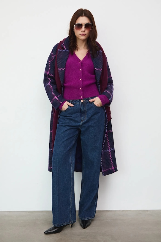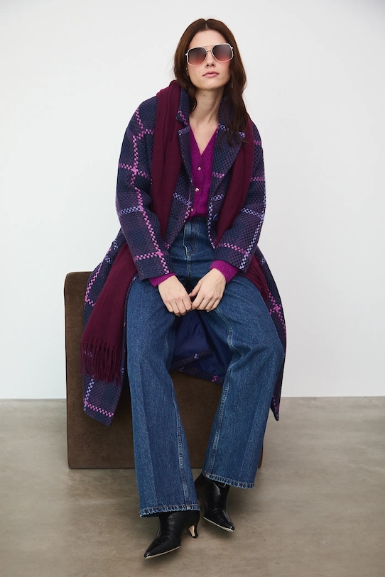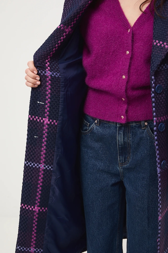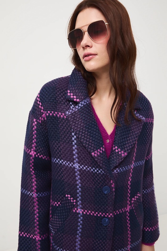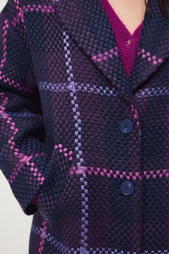 Пальто из коллекции Medicine. Переходный фасон из узорчатой ткани. - Большой размер. - Длинный рукав. - Заниженная линия плеча. - Однобортный пиджак с застежкой на пуговицы. - Классические лацканы. - Два боковых накладных кармана. - Разрез сзади. - Неутепленная модель с подкладкой. - Узорчатая ткань. - Клетчатый узор. - Длина рукава (от воротника): 71,5 см. - Длина: 115 см. - Ширина груди: 57 см. - Размеры указаны для размера: S.