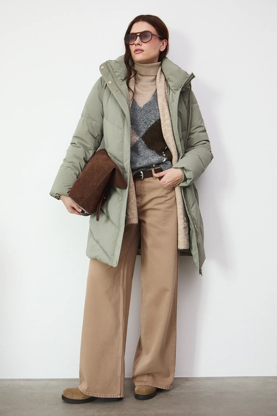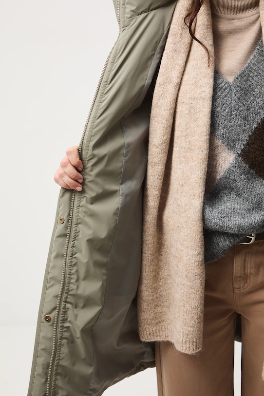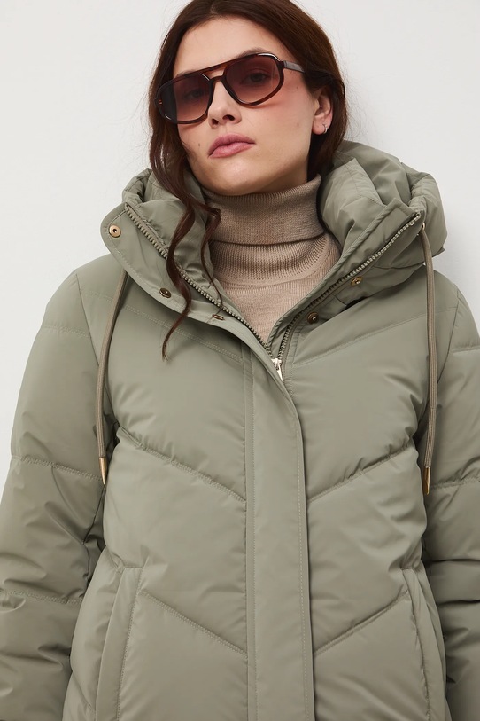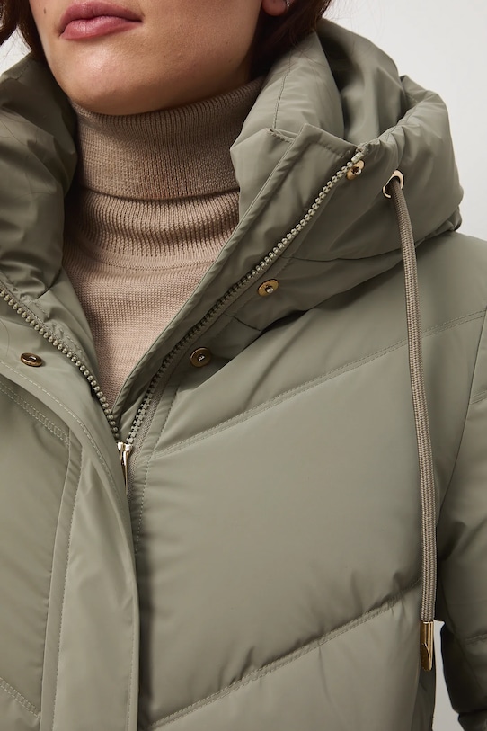 Пальто из коллекции «Medicine». Теплая модель из стеганого материала. - Обычная посадка. - Застежка-молния и кнопки. - Поднятый воротник. - Капюшон с завязками. - Два прорезных боковых кармана на молнии. - Утепленная модель с подкладкой. - Стеганая модель. - Длина рукава: 66 см. - Длина: 93 см. - Ширина груди: 53 см. - Ширина плеч: 42 см. - Размеры указаны для размера: S.
