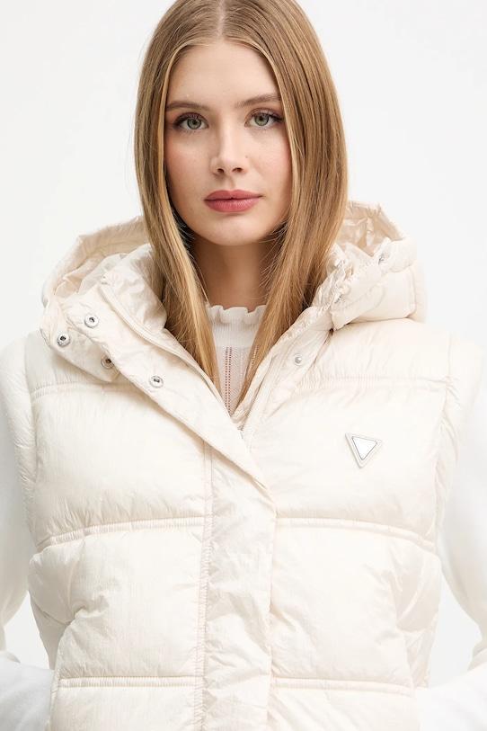 Жилет без рукавов из коллекции Guess. Утеплённая модель из гладкой ткани. - Гидрофобная отделка внешнего материала препятствует проникновению влаги внутрь, обеспечивая тем самым хорошую защиту от неблагоприятных погодных условий. - Простой дизайн. - Застежка-молния и кнопки. - Съемный капюшон. - Два боковых кармана с застежкой на кнопку. - Внутренний карман на молнии позволяет безопасно хранить мелкие предметы. - Утепленная модель с подкладкой. - Длина: 50 см. - Ширина под мышками: 52 см. - Размеры указаны для размера: S.