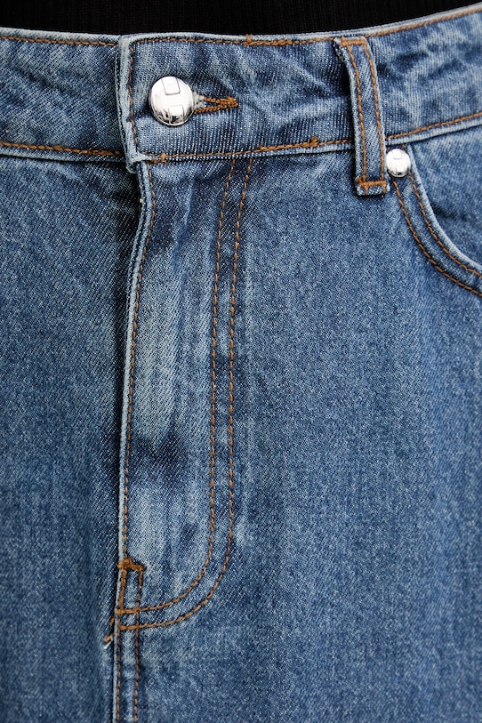 Юбка из коллекции Silvian Heach из хлопкового денима. - Модель макси длины. - Расклешенный крой. - Потайная застежка на молнию и пуговицы. - Три накладных кармана спереди. - Два накладных кармана на ягодицах. - У него есть щель. - Ширина талии: 36 см. - Ширина бедер: 46 см. - Длина: 98 см. - Размеры указаны для размера: 27.