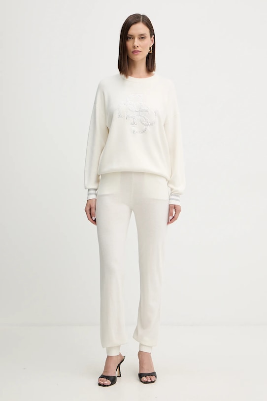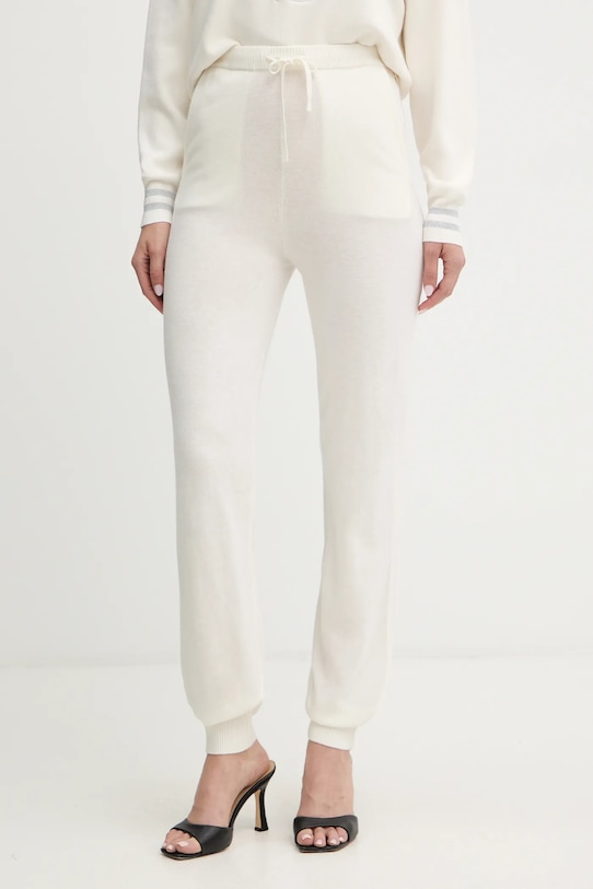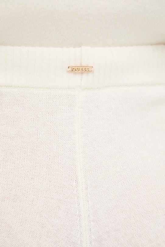 Спортивные брюки из коллекции Guess из гладкого трикотажа. Кашемировая шерсть обладает отличными терморегулирующими свойствами, отличается исключительной лёгкостью и пушистостью. - Простой дизайн, не стесняющий движений. - Эластичный пояс и дополнительная регулировка ширины с помощью шнурков для предотвращения сползания во время движения. - Накладные карманы. - Тонкий, эластичный трикотаж. - Ширина талии: 35 см. - Ширина бедер: 46 см. - Высота талии: 35 см. - Ширина штанины внизу: 12 см. - Ширина штанины: 26 см. - Длина по внутреннему шву: 86 см. - Размеры указаны для размера: S.