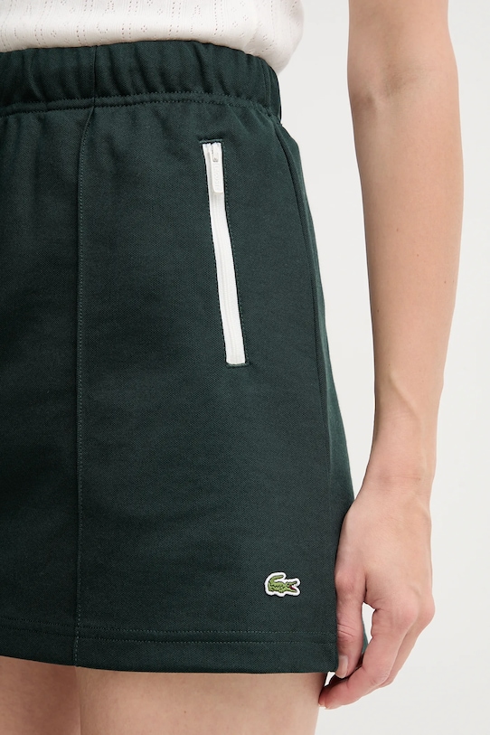 Юбка из коллекции Lacoste выполнена из гладкого трикотажа. Модель выполнена из исключительно комфортного материала с высоким содержанием хлопка. «Создай более элегантный мир» - инициатива Lacoste, сочетающая моду и экологическую ответственность. Она пропагандирует устойчивый образ жизни и заботу об окружающей среде, побуждая людей делать осознанный выбор. - Расклешенный крой. - Эластичный пояс и дополнительная внутренняя регулировка ширины с помощью шнурков. - Карманы на молнии. - Тонкий, эластичный трикотаж. - Ширина талии: 38 см. - Длина: 38 см. - Размеры указаны для размера: 36.