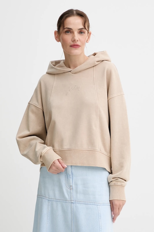 Эта толстовка с капюшоном из коллекции G-Star выполнена из эластичного трикотажа. Модель выполнена из исключительно комфортного хлопкового материала. - Свободный крой, обеспечивающий полную свободу движений. - Крой рукава со спущенной линией плеча не ограничивает подвижность. - Модель с капюшоном. - Рукава и низ изделия отделаны удобными эластичными манжетами. - Длина рукава (от капюшона): 77 см. - Длина: 54 см. - Ширина под мышками: 55 см. - Размеры указаны для размера: S.