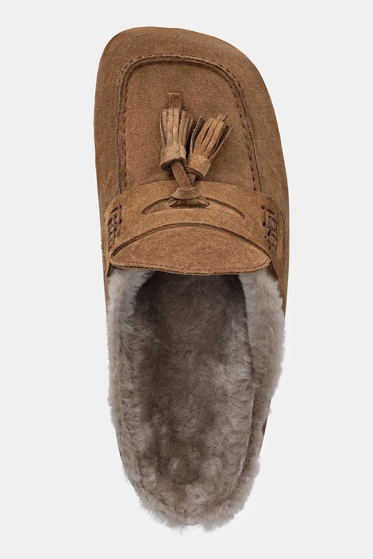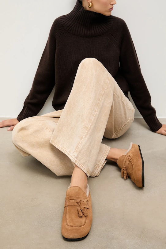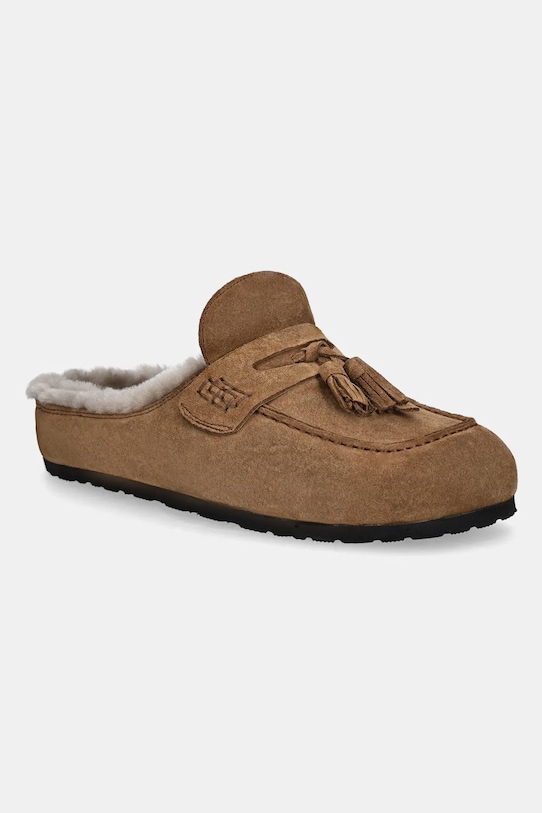 Эти шлёпанцы Answear.LAB изготовлены из замши. Мягкая внутренняя отделка обеспечивает ощущение мягкости и повышенный комфорт. - Квадратный, жёсткий носок. - Контурная стелька поддерживает свод стопы и обеспечивает длительный комфорт. - Модель с шерстяной подкладкой, которая отличается высокими терморегулирующими свойствами. - Подошва из пеноматериала обеспечивает более мягкое ощущение и дополнительную амортизацию. - Длина вставки: 23 см. - Размеры указаны для размера: 37.