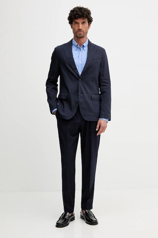 Этот пиджак из коллекции BOSS выполнена из тонкой, неэластичной ткани. Модель выполнена из дышащего льняного материала. Manteco - итальянский бренд, известный своей текстильной продукцией, в частности, переработанной шерстью. Компания уделяет первостепенное внимание устойчивому развитию, сочетая современные технологии с традиционными текстильными техниками. Материалы Manteco используются в индустрии моды и текстиля, сочетая качество с экологичностью. - Обычная посадка. - Застежка на пуговицы. - Модель с карманами, декорированными клапанами. - Длина рукава: 63 см. - Длина: 71 см. - Ширина под мышками: 52 см. - Ширина плеч: 41 см. - Размеры указаны для размера: 48.