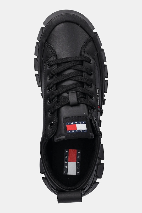 Кроссовки из коллекции Tommy Jeans, изготовленные из натуральной кожи, с прочной и устойчивой к истиранию резиновой подошвой. - Платформенная модель. - Резиновая подошва прочная и устойчивая к повреждениям. - Петля сзади облегчает надевание и снятие обуви. - Плоские шнурки устраняют давление на подъем стопы, обеспечивая хорошую посадку и комфорт. - Съемная, легко чистящаяся текстильная вставка. - Высота платформы: 5 см. - Длина вставки: 24 см. - Размеры указаны для размера: 38.