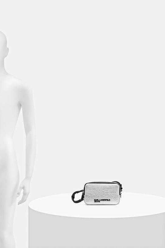 Небольшая сумочка из коллекции Karl Lagerfeld Jeans. Модель на молнии, выполнена из комбинации синтетического материала и экокожи. - Имеет два отделения на молнии. - Внутренний накладной карман. - Не подходит для формата А4. - Модель на подкладке. - Несъемный, регулируемый ремешок. - Минимальная длина ремня: 117 см. - Максимальная длина ремня: 132 см. - Глубина: 7 см. - Ширина у основания: 18 см. - Высота: 12 см.