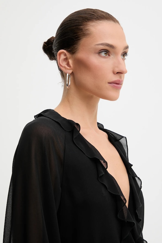 Это платье с вырезом «Бардо» выполнено из тонкой, неэластичной ткани. Эффектный дизайн для особых случаев. - Расклешенный крой. - Модель с декоративными оборками. - Короткая планка с пуговицами. - У него есть щель. - Манжеты на пуговицах. - Длина рукава (от горловины): 73 см. - Длина: 135 см. - Длина спинки: - Ширина под мышками: 40 см. - Размеры указаны для размера: S.
