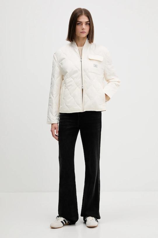 Эта куртка из коллекции Guess Jeans. Модель без подкладки выполнена из стёганой ткани. Эта модель выполнена из тонкого материала, идеально подходящего для тёплого времени года.