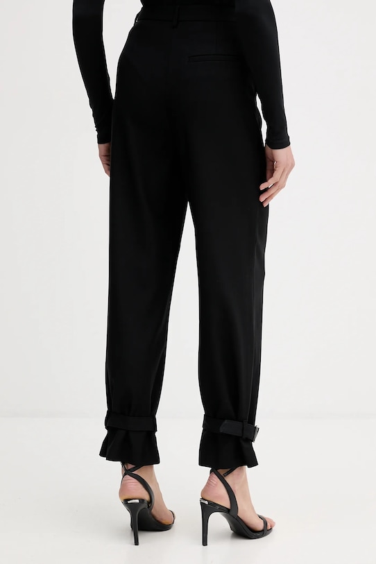 Эти брюки из коллекции Sisley изготовлены из тонкой, неэластичной ткани. Полиэстер обеспечивает повышенную устойчивость к сминанию. - Брюки свободные в области бедер и ягодиц. - Простой дизайн, не стесняющий движений. - Модель с высокой талией, застежкой на пуговицы и молнию. - Два боковых накладных кармана. - Имитация карманов на ягодицах. - Текстильные полоски внизу штанин. - Ширина талии: 35 см. - Ширина бедер: 47 см. - Высота талии: 33,5 см. - Ширина штанины внизу: 22,5 см. - Ширина штанины: 28,5 см. - Длина внешней части штанины: 100,5 см. - Размеры указаны для размера: 36.