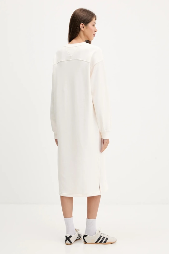 Платье из коллекции Tommy Jeans, выполненное из тонкой эластичной ткани. Эта модель выполнена из исключительно комфортного хлопкового материала. - Эта модель содержит регенерированные хлопковые волокна. Новые волокна и пряжа производятся из старых текстильных отходов и используются для производства новой одежды. - Крой рукава со спущенной линией плеча не ограничивает подвижность. - Классический круглый вырез. - У него есть прорези. - Рукава отделаны ребристыми манжетами. - Накладные карманы. - Длина рукава (от горловины): 74 см. - Длина: 115 см. - Ширина под мышками: 55 см. - Размеры указаны для размера: S.