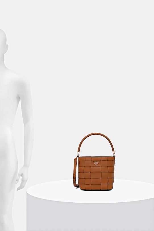 Небольшая сумочка из коллекции Guess. Модель с застёжкой-крючком, выполнена из синтетического материала. - Магнитная застежка. - Имеет внутренний карман на молнии и отделения для карт. - Не подходит для формата А4. - Имеет ручку и съемный регулируемый ремень. - Входящий в комплект тканевый чехол защищает изделие от пыли. - Длина ручки: 41 см. - Минимальная длина ремешка: 103 см. - Максимальная длина ремня: 112 см. - Глубина: 11 см. - Высота: 22 см. - Ширина у основания: 19 см.