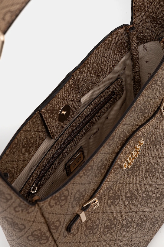 Небольшая сумочка из коллекции Guess. Модель на молнии изготовлена из искусственной кожи, которую легко чистить и ухаживать. Входящий в комплект тканевый пыльник защитит сумку от пыли. - Основное отделение застегивается на магнит. - Карман на молнии на задней стороне позволяет безопасно хранить мелкие предметы. - Имеет два внутренних кармана: один прорезной, другой на молнии. - Усиленное дно сумки позволяет изделию долго сохранять форму. - Модель оснащена металлическими ножками, которые защищают дно сумки. - Сумка для ношения в руке или на плече. - Удобная регулируемая ручка. - Не подходит для формата А4. - Модель на подкладке. - Входящий в комплект тканевый чехол защищает изделие от пыли. - Количество внутренних карманов на молнии: 1. - Количество внутренних накладных карманов: 1. - Минимальная длина ручки: 44 см. - Максимальная длина ручки: 64 см. - Глубина: 10 см. - Высота: 19 см. - Ширина у основания: 22 см.