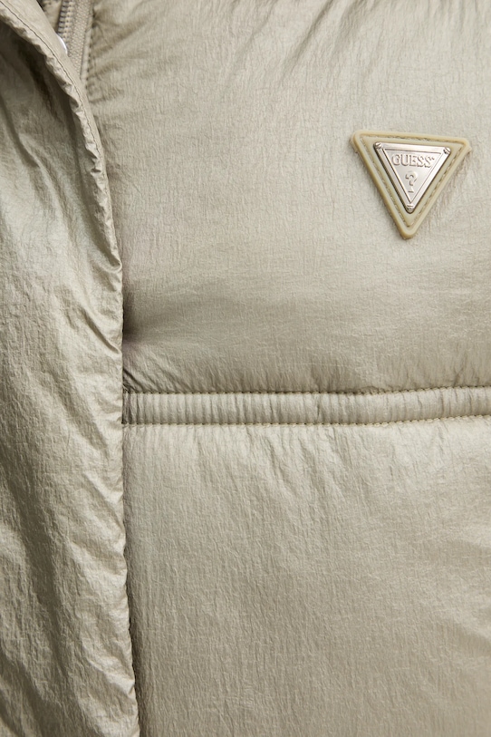 Жилет без рукавов из коллекции Guess. Утеплённая модель из гладкой ткани. - Гидрофобная отделка внешнего материала препятствует проникновению влаги внутрь, обеспечивая тем самым хорошую защиту от неблагоприятных погодных условий. - Простой дизайн. - Застежка-молния и кнопки. - Съемный капюшон. - Два боковых кармана с застежкой на кнопку. - Внутренний карман на молнии позволяет безопасно хранить мелкие предметы. - Утепленная модель с подкладкой. - Длина: 50 см. - Ширина под мышками: 52 см. - Размеры указаны для размера: S.