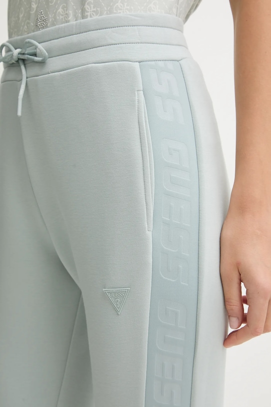 Спортивные брюки из коллекции Guess. Изготовлены из плотной, эластичной ткани, высококачественного материала, отвечающего принципам устойчивого развития. - Частично изготовлен из LENZING ECOVERO, экологически чистого материала. LENZING ECOVERO производится из органической целлюлозы и древесной массы, используя на 50% меньше воды, чем популярная вискоза. - Брюки свободные в области бедер и ягодиц. - Высокая талия обеспечивает комфорт во время занятий спортом и позволяет визуально стройнить фигуру. - Эластичный пояс предотвращает скольжение во время движения. - Ножки отделаны удобными эластичными манжетами. - Два боковых накладных кармана. - Декоративные детали. - Ширина талии: 34 см. - Ширина бедер: 48 см. - Высота талии: 27 см. - Ширина штанины внизу: 15 см. - Ширина штанины: 26 см. - Длина штанины: 102 см. - Размеры указаны для размера: S.
