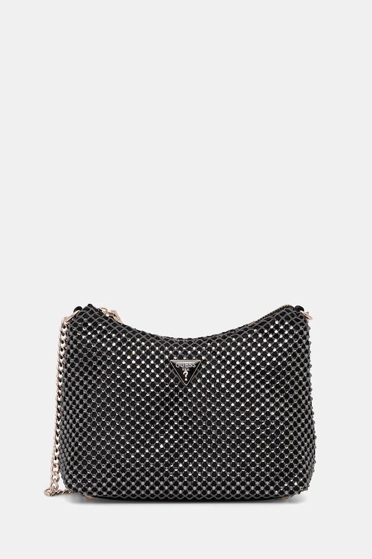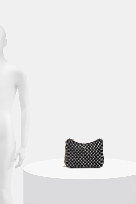 Небольшая сумочка из коллекции Guess. Эта модель с застёжкой-пряжкой выполнена из комбинации текстиля и синтетических материалов. Эффектный аксессуар для особых случаев. - Входящий в комплект тканевый чехол защищает изделие от пыли. - Отделение на молнии. - Имеет внутренний карман на молнии и отделения для карт. - Усиленное дно сумки позволяет изделию долго сохранять форму. - Модель оснащена металлическими ножками, которые защищают дно сумки. - Сумка для ношения в руке или на плече. - Несъемный, нерегулируемый ремешок. - Не подходит для формата А4. - Модель на подкладке. - Количество слотов для карт: 3. - Количество внутренних карманов на молнии: 1. - Длина ремешка: 54 см. - Глубина: 7 см. - Высота: 16 см. - Ширина у основания: 21 см.