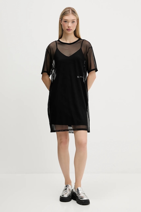 Это платье из коллекции Karl Lagerfeld Jeans выполнено из двух слоёв ткани. Модель выполнена из эластичного материала, который адаптируется к фигуре. - В состав продукта входят волокна органического хлопка, выращенного без использования вредных химикатов, химических пестицидов и искусственных удобрений. - Простой дизайн, не стесняющий движений. - Классический круглый вырез. - Короткий рукав. - Модель изготовлена из сетчатого материала. - Модель поставляется с нижней юбкой, застегивающейся на кнопки. - Модель без застежки. - Длина: 95 см. - Ширина под мышками: 60 см. - Размеры указаны для размера: S.