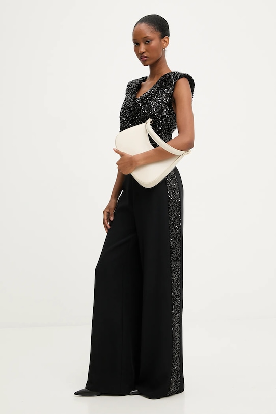 Брюки из коллекции Answear.Lab, изготовленные из комбинации двух разных материалов. Полиэстер гарантирует высокую устойчивость к сминанию. - Простой дизайн, не стесняющий движений. - Расклешенные штанины. - Модель с высокой талией и застежкой-молнией сбоку. - Модель на подкладке. - Ширина талии: 36 см. - Ширина бедер: 50 см. - Высота талии: 34 см. - Ширина штанины внизу: 35 см. - Ширина штанины: 32 см. - Длина по внутреннему шву: 82 см. - Размеры указаны для размера: S.