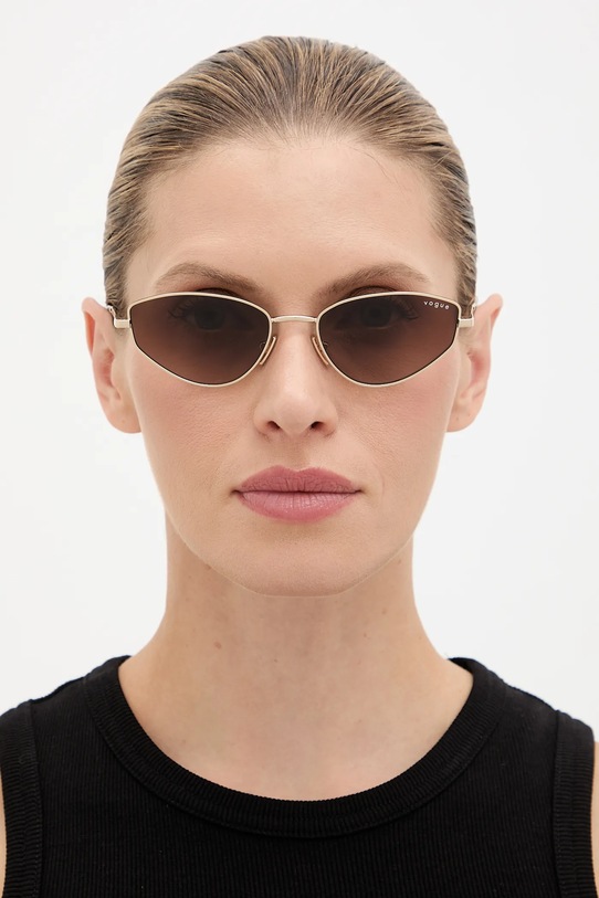 Солнцезащитные очки из коллекции VOGUE. Эта модель с прозрачными линзами и оправой из металла и пластика. Также имеет защиту от ультрафиолета UV 400. - Форма оправы: кошачьи глаза. - Фильтр UV 400 обеспечивает максимальную защиту от солнечного излучения. - Категория 3 (пропускает 8–18% света) - самая распространённая и универсальная категория затемняющих фильтров. Очки категории 3 идеально подходят для повседневного использования в солнечные дни и для отдыха в жарких странах. - В комплект модели входят чехол и салфетка для протирки очков. - Ширина рамы: 131 мм. - Ширина линзы: 54 мм. - Размеры указаны для размера: 56.