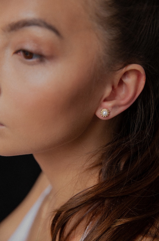 Серьги из коллекции ANIA KRUK. Эти серьги с натуральной пресноводной жемчужиной изготовлены из золота 375 пробы.