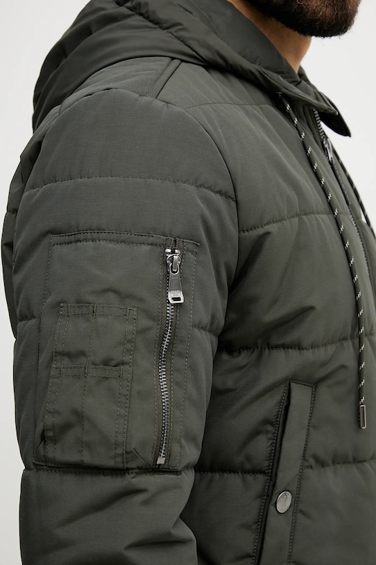Эта куртка из коллекции Joop! выполнена из гладкой ткани с утеплителем. Стёганая конструкция дополнена синтетическим утеплителем для дополнительного комфорта в прохладную погоду. - Простой дизайн, не стесняющий движений. - Удобная застежка-молния позволяет легко надевать и снимать. - Рукава и низ изделия отделаны манжетами для защиты от неблагоприятных погодных условий. - Съемный капюшон, регулируемый с помощью шнурков и стопоров, обеспечивает дополнительную защиту от ветра и дождя. - Дополнительный внутренний карман позволяет безопасно хранить мелкие предметы. - Длина рукава: 65 см. - Длина: 71 см. - Ширина под мышками: 61 см. - Ширина плеч: 48 см. - Размеры указаны для размера: 50.