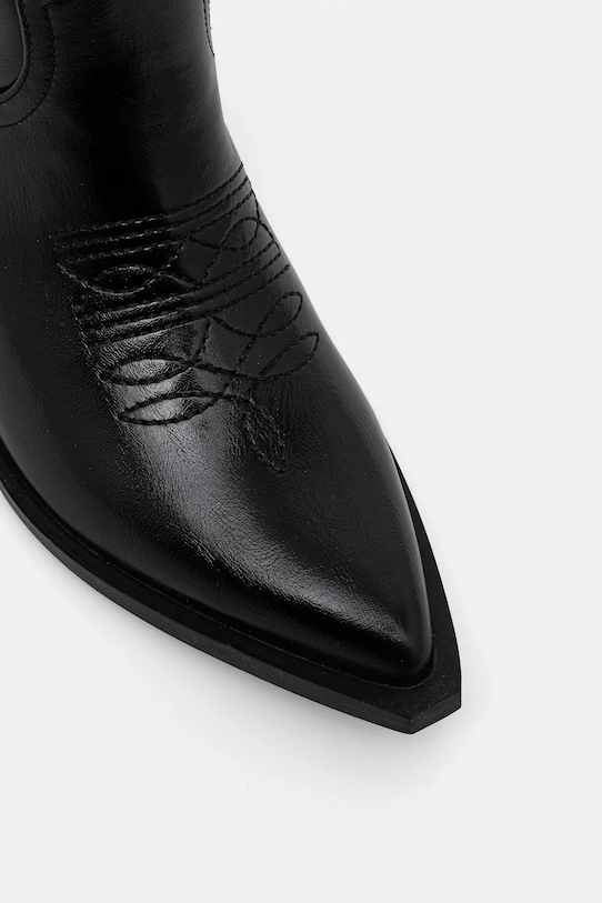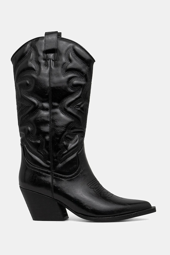 Эти ковбойские сапоги из коллекции Bianco изготовлены из искусственной кожи. Верх из непористой ткани легко чистится влажной тканью. - Заостренный, жесткий нос. - Усиленный задник стабилизирует пятку и удерживает ногу в обуви, не давая ей выскользнуть во время движения. - Модель с устойчивым каблуком. - Петли облегчают надевание обуви на ногу. - Удобная боковая застежка на короткую молнию позволяет легко надевать и снимать. - Модель с текстильной подкладкой. - Резиновая подошва прочная и устойчивая к повреждениям. - Верхняя окружность: 36,5 см. - Высота голенища: 32 см. - Высота каблука: 7 см. - Длина вставки: 24 см. - Размеры указаны для размера: 38.