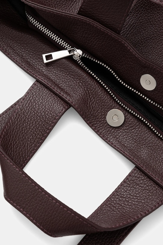Большая сумка из коллекции Answear.Lab. Модель на молнии из натуральной кожи. - Застежка-молния и магнитная застежка. - Длинные и короткие ручки. - Имеет внутренние карманы, в том числе один на молнии. - Вмещает формат А4. - Модель на подкладке. - Входящий в комплект тканевый чехол защищает изделие от пыли. - Длина ручки: 34/75 см. - Глубина: 16,5 см. - Высота: 31 см. - Ширина у основания: 33 см.