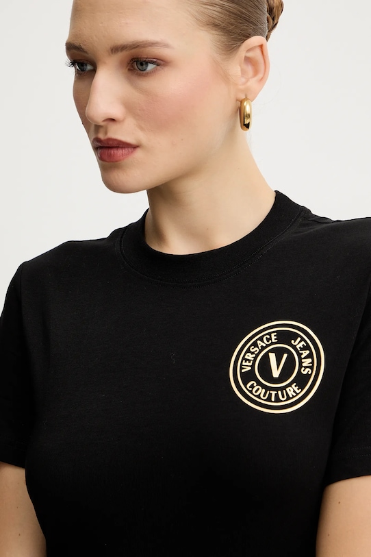 Это платье из коллекции Versace Jeans Couture выполнено из тонкого эластичного трикотажа. Модель выполнена из исключительно комфортного материала с высоким содержанием хлопка. - Простой дизайн, не стесняющий движений. - Классический круглый вырез. - Модель с принтом. - Ширина под мышками: 44 см. - Ширина талии: 40 см. - Длина: 92 см. - Размеры указаны для размера: S.