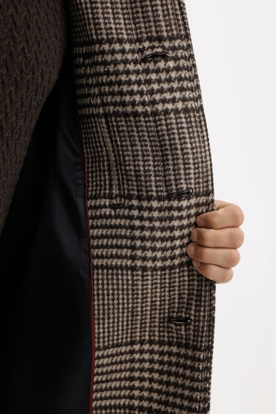Это пальто из коллекции Tommy Hilfiger без подкладки сшито из ткани с узором. Высокое содержание шерсти обеспечивает защиту от холода, а добавление полиэстера повышает устойчивость к сминанию. - Простой дизайн, не стесняющий движений. - Застежка на пуговицы. - Неутепленная модель с подкладкой. - Рукава реглан благодаря своей конструкции обеспечивают большую свободу движений. - Два боковых кармана с застежкой на кнопку. - Дополнительные внутренние карманы позволяют безопасно хранить мелкие предметы. - Длина рукава (от воротника): 75 см. - Длина: 110 см. - Ширина под мышками: 62 см. - Размеры указаны для размера: M.