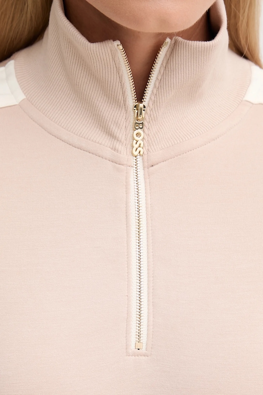 Эта толстовка из коллекции BOSS выполнена из тонкой, эластичной ткани. Эта модель выполнена из исключительно комфортного и дышащего материала, идеально подходящего для теплого времени года. - Свободный крой, обеспечивающий полную свободу движений. - Длинный рукав. - Крой рукава со спущенной линией плеча не ограничивает подвижность. - Поднятый воротник обеспечивает дополнительную защиту от холода. - Короткая застежка-молния обеспечивает эффективную вентиляцию и легкость надевания и снимания. - Рукава и низ изделия отделаны удобными эластичными манжетами. - Длина рукава (от воротника): 69 см. - Длина: 57 см. - Ширина под мышками: 59 см. - Размеры указаны для размера: S.