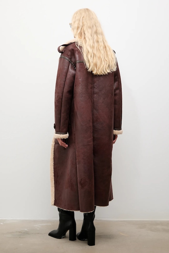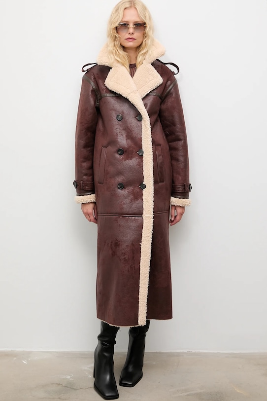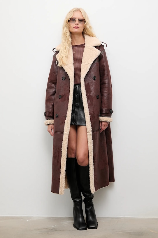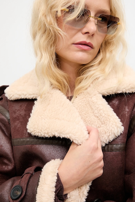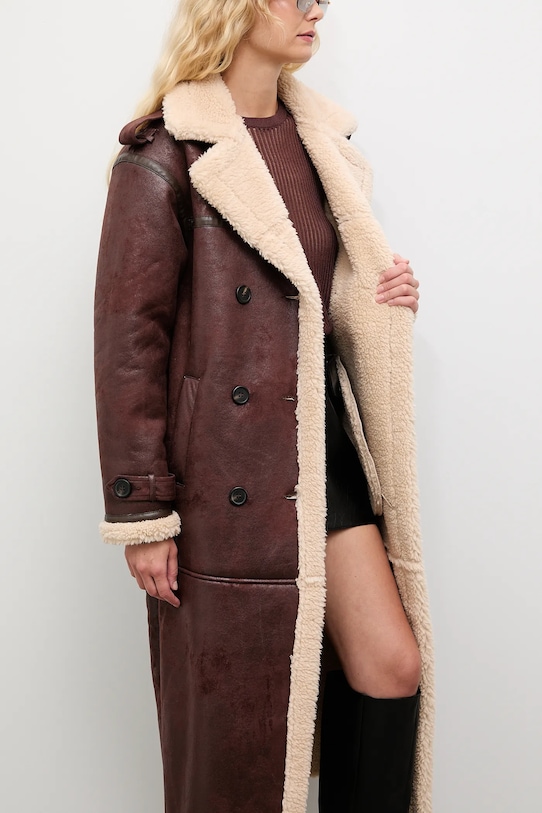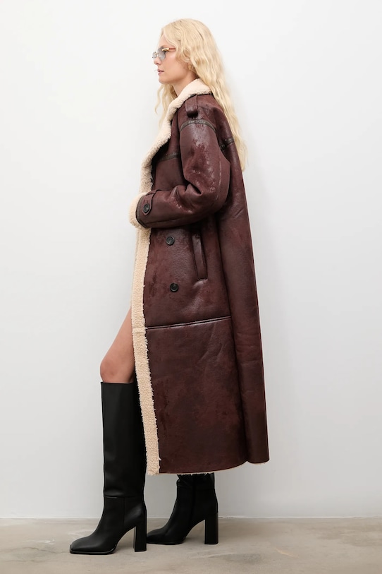 Пальто из коллекции Answear.Lab. Это лёгкое утеплённое пальто изготовлено из искусственной кожи. Мягкая подкладка обеспечивает мягкость и повышенный комфорт. - Свободный крой, обеспечивающий полную свободу движений. - Мягкая внутренняя отделка обеспечивает высокий комфорт использования и оптимальный тепловой комфорт. - Классические лацканы. - Крой рукава со спущенной линией плеча не ограничивает подвижность. - Погоны на плечах. - Двубортный пиджак с застежкой на пуговицы. - Два боковых накладных кармана. - Плотная, неэластичная ткань. - Длина рукава (от воротника): 76 см. - Длина: 124 см. - Ширина под мышками: 50 см. - Размеры указаны для размера: S.