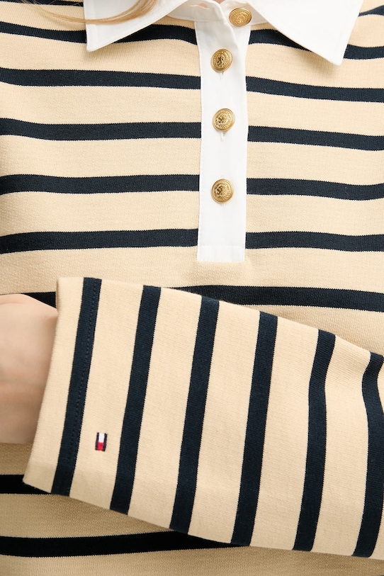 Эта толстовка из коллекции Tommy Hilfiger выполнена из эластичного трикотажа с рисунком. Она изготовлена из исключительно комфортного и дышащего хлопкового материала. - Модель частично изготовлена из хлопка, произведенного с использованием устойчивых производственных процессов, что позволяет снизить ее воздействие на окружающую среду. - Свободный крой, обеспечивающий полную свободу движений. - Длинный рукав. - Крой рукава со спущенной линией плеча не ограничивает подвижность. - Модель с воротником. - Застежка на короткие пуговицы обеспечивает эффективную вентиляцию и легкость надевания и снимания. - Тонкий, эластичный трикотаж. - Длина рукава (от воротника): 78 см. - Длина: 65 см. - Ширина под мышками: 54 см. - Размеры указаны для размера: S.