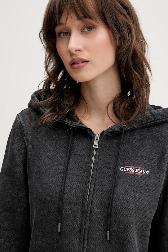 Эта толстовка с капюшоном из коллекции Guess Jeans выполнена из эластичного трикотажа. Модель выполнена из исключительно комфортного и высококачественного материала. - GUESS JEANS использует переработанные материалы для изготовления своей продукции, не ставя под угрозу ее качество и долговечность. - Простой дизайн, не стесняющий движений. - Длинный рукав. - Капюшон с завязками обеспечивает дополнительное тепло и защиту при необходимости. - Удобная застежка-молния позволяет легко надевать и снимать. - Рукава и низ изделия отделаны удобными эластичными манжетами. - Модель с принтом. - Длина рукава: 60 см. - Длина: 58 см. - Ширина под мышками: 49 см. - Размеры указаны для размера: S.