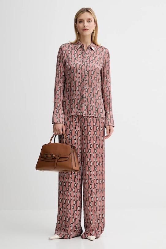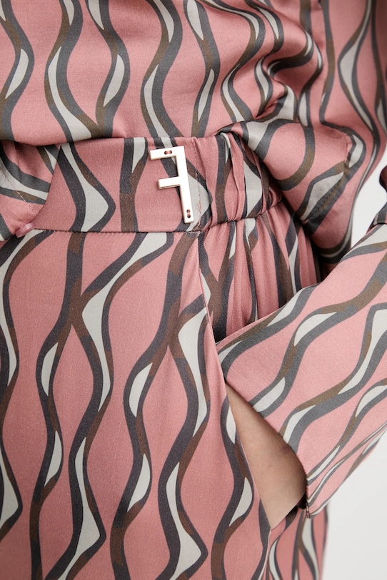 Легкие брюки из коллекции Fracomina из ткани с рисунком. Изготовлены из дышащего материала с высоким содержанием вискозы. - Простой дизайн, не стесняющий движений. - Модель выполнена из материала атласного переплетения. - Эластичный пояс предотвращает скольжение во время движения. - Накладные карманы. - Тонкая, неэластичная ткань. - Ширина талии: 37 см. - Ширина бедер: 60 см. - Высота талии: 36 см. - Ширина штанины внизу: 33 см. - Ширина штанины: 33 см. - Длина по внутреннему шву: 83 см. - Размеры указаны для размера: S.