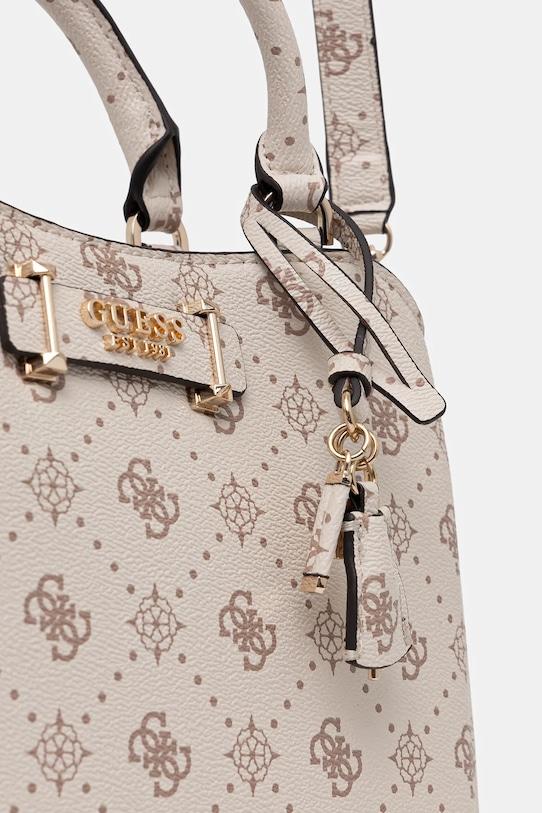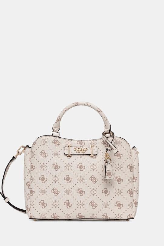 Сумка среднего размера из коллекции Guess. Модель выполнена из экокожи с застёжкой-крючком. В комплект входит брелок. - Имеет три отделения: одно на молнии, два на магнитной застежке. - Модель на подкладке. - Не подходит для формата А4. - Три внутренних кармана: один на молнии, два накладных. - Модель оснащена металлическими ножками, которые защищают дно сумки. - Усиленное дно сумки позволяет изделию долго сохранять форму. - Сумка для ношения в руке или на плече. - Имеет ручки и съемный регулируемый ремень. - Минимальная длина ремешка: 108 см. - Максимальная длина ремня: 127 см. - Длина ручки: 27 см. - Глубина: 11 см. - Высота: 22 см. - Ширина у основания: 27 см.