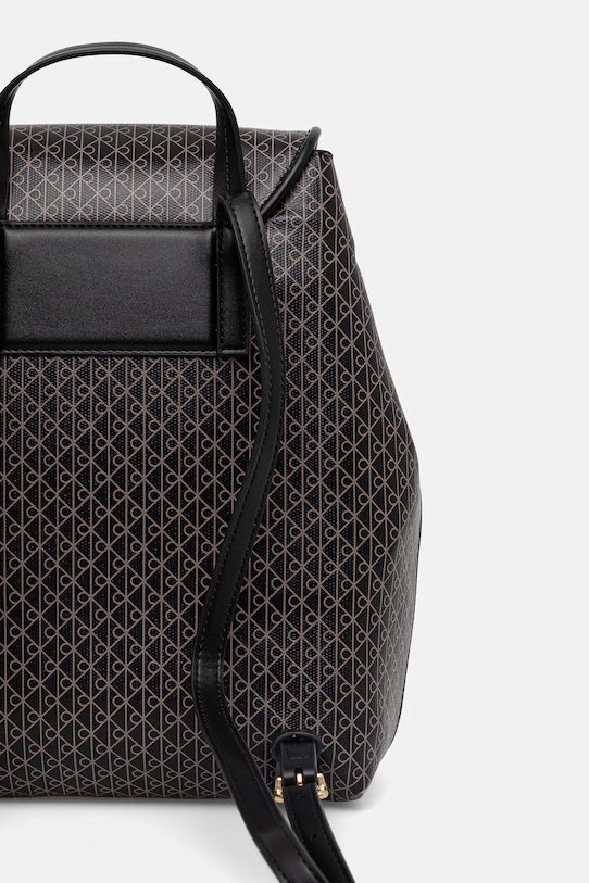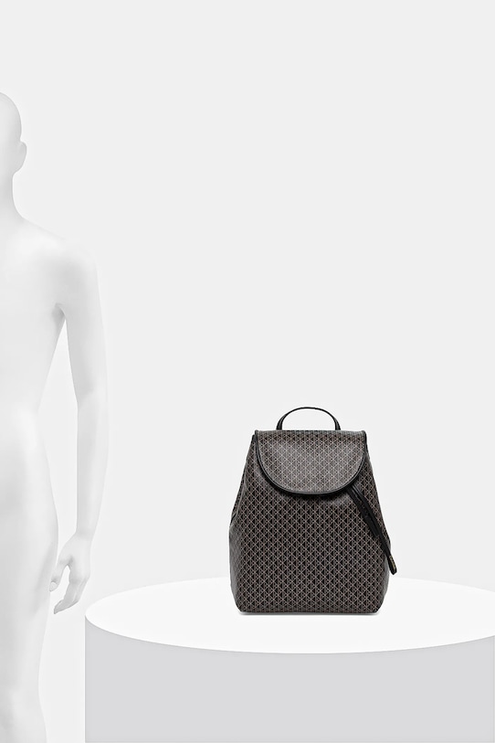 Рюкзак из коллекции Calvin Klein. Изготовлен из синтетического материала. - Данное изделие частично изготовлено из переработанного полиэстера. - Отделение затягивается шнурками и застегивается на магнит. - Не подходит для формата А4. - Короткая ручка для удобной переноски в руке. - Регулируемая длина ремня. - Модель на подкладке. - Имеет два внутренних кармана: один прорезной, другой на молнии. - Глубина: 13 см. - Высота: 32 см. - Ширина у основания: 24 см.