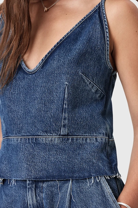 Блузка из коллекции AllSaints выполнена из воздушного материала с высоким содержанием лиоцелла. - Приталенный крой, подчеркивающий силуэт. - Декоративный, заостренный вырез. - Регулируемые бретели обеспечивают оптимальную поддержку груди и позволяют индивидуально подогнать по фигуре, не раздражая кожу на плечах. - Модель с декоративной бахромой. - Удобная застежка-молния сбоку позволяет легко надевать и снимать.