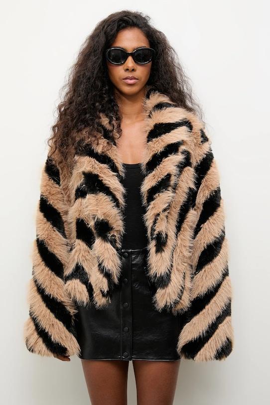 Куртка из коллекции Answear.Lab. Модель без подкладки выполнена из искусственного меха. Мягкий и приятный на ощупь материал. - Свободный крой, обеспечивающий полную свободу движений. - Застежка-кнопка. - Два накладных кармана спереди. - Модель без подкладки. - Длина рукава: 60 см. - Длина: 56 см. - Ширина под мышками: 50 см. - Размеры указаны для размера: S.